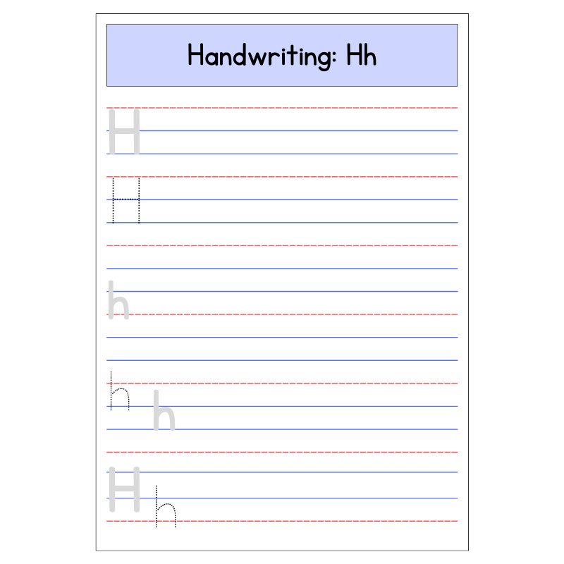 • Uppercase and lowercase letter H tracing