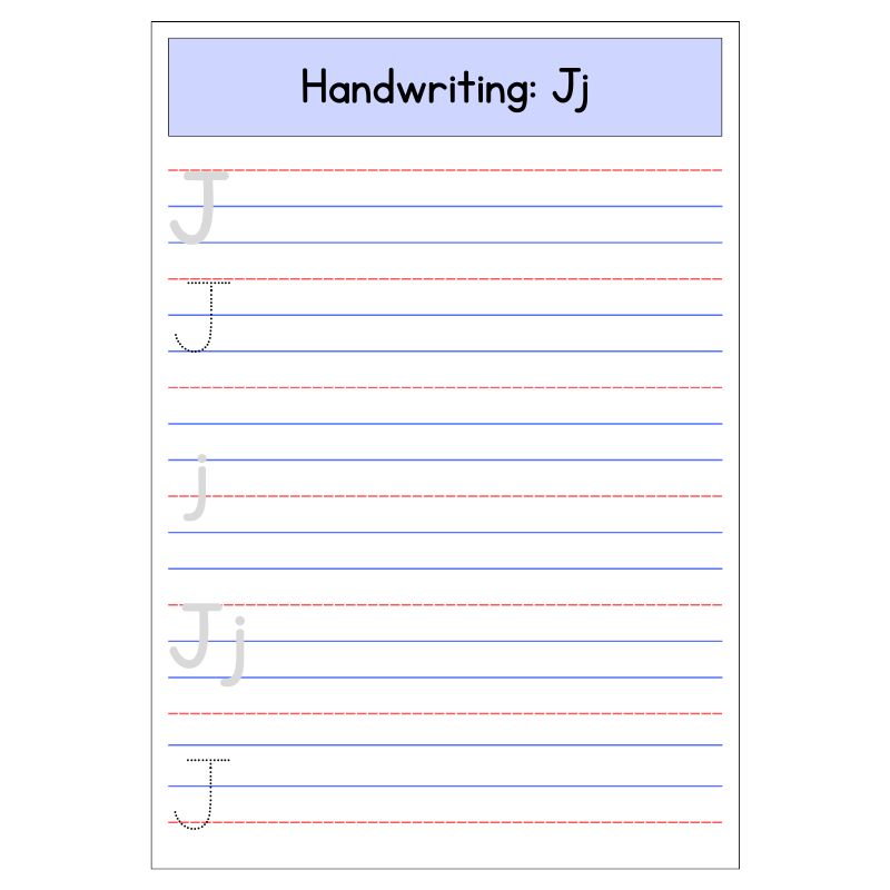 - Uppercase and lowercase letter J tracing