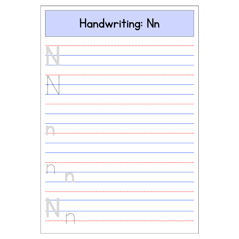 Kindergarten Letter N Handwriting Worksheet (Free PDF Download)