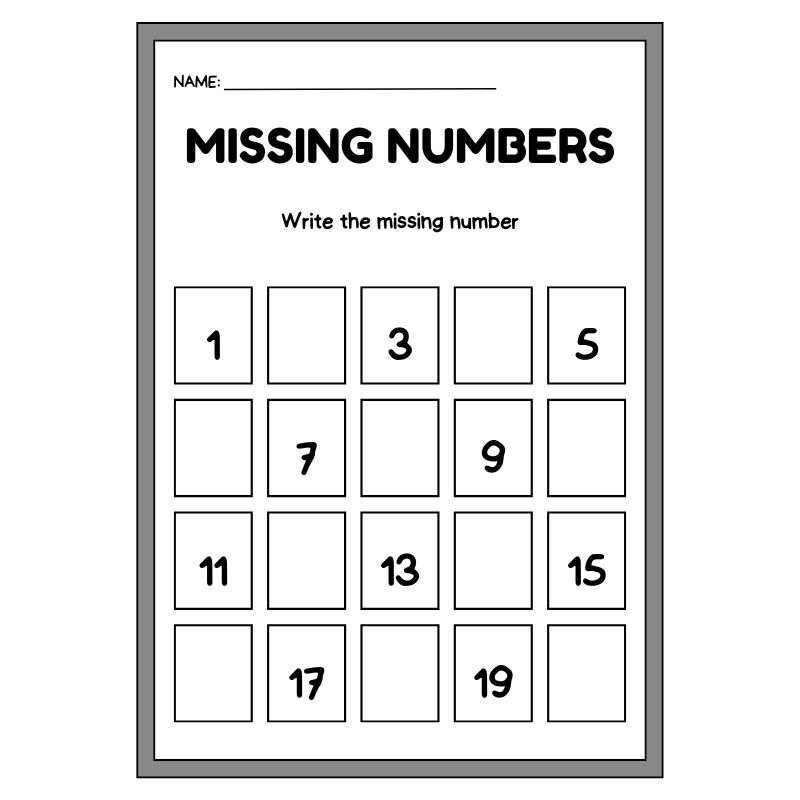 Kindergarten Missing Odd Numbers Worksheet (Free PDF Download)
