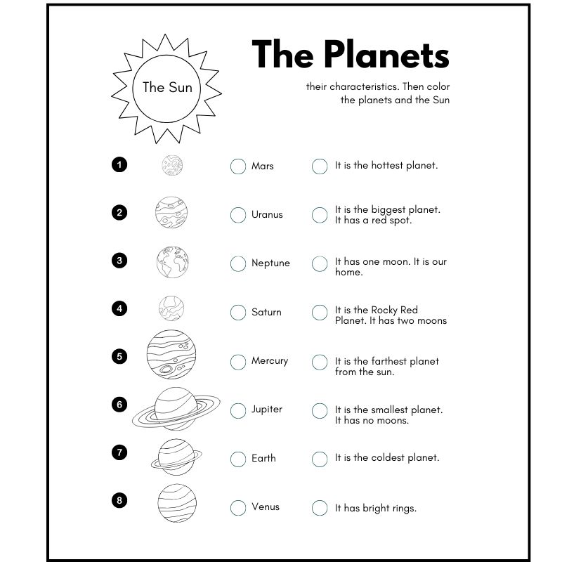 • Solar system coloring activity